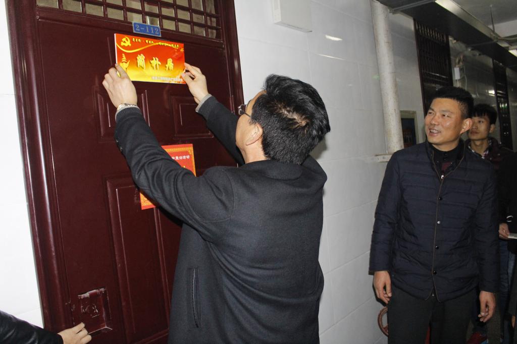 为了持续推进“两学一做”学习教育,充分发挥党员的先锋模范作用,进一步配合学院为期六周的学生宿舍安全及卫生集中整治活动,信息工程学院从11月15日至12月28日在学生党员中开展“亮出身份·树立标杆·作出表率·带动团队”评选系列活动,12月12日下午,党委副书记、副院长刘永亮,学工部部长、学生处处长王超联,信息学院总支书记闫军等为党员宿舍挂牌。