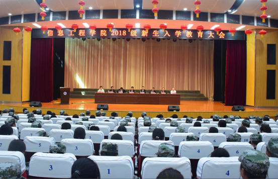 2018年9月21日上午,信息工程学院2018级新生入学教育大会在明德堂举行。出席大会的有信息工程学院院长何玉辉、总支书记闫军,院教务处副处长赵刘军旭、学生处副处长张科海,信息工程学院副院长殷锋社、教学办主任宋承继、工程训练中心主任吕阿璐、学工办主任何瑾、全体辅导员以及大一新生班主任。大会由信息工程学院党总支书记闫军主持。
