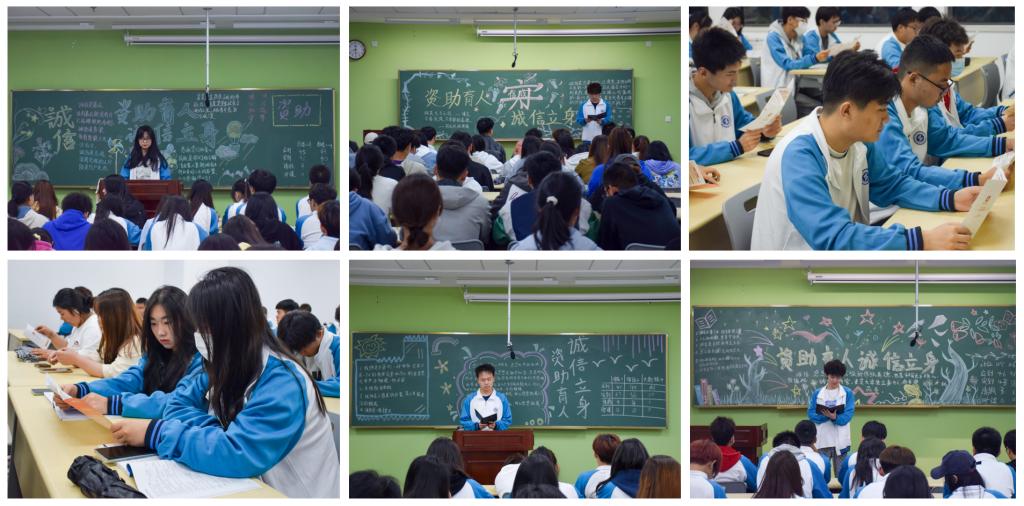 主题班会上,同学们学习了大学生资助政策,对校园地国家助学贷款、生源地信用助学贷款等国家资助项目以及勤工助学、学费缓交减免等学校资助项目有了一定的了解,加深了同学们对党和国家资助政策的了解,确保学生资助政策宣传到位。各班主持人围绕主题,讲述了许多贴近同学们学习、生活的诚信小故事,引起大家共鸣的同时也让大家领悟到“诚信乃立身之本”。有些班级通过讲述近期网络上关于大学生被诈骗的案件,提醒同学们面对网络上鱼龙混杂的信息时刻保持警惕,同时引导同学们树立正确的消费观,养成良好的消费习惯。