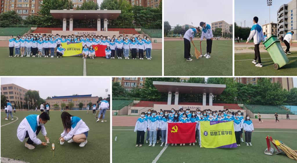 为进一步丰富“不忘初心、牢记使命”主题教育工作内涵,强化学生党员、发展对象、入党积极分子全心全意为人民服务的意识,充分发挥先锋模范作用,6月25日—6月27日端午三天假期间,信息工程学院学生第一党支部组织学生党员、发展对象、积极分子150余人开展“尊重劳动、崇尚志愿”义务清扫学校操场志愿服务活动。