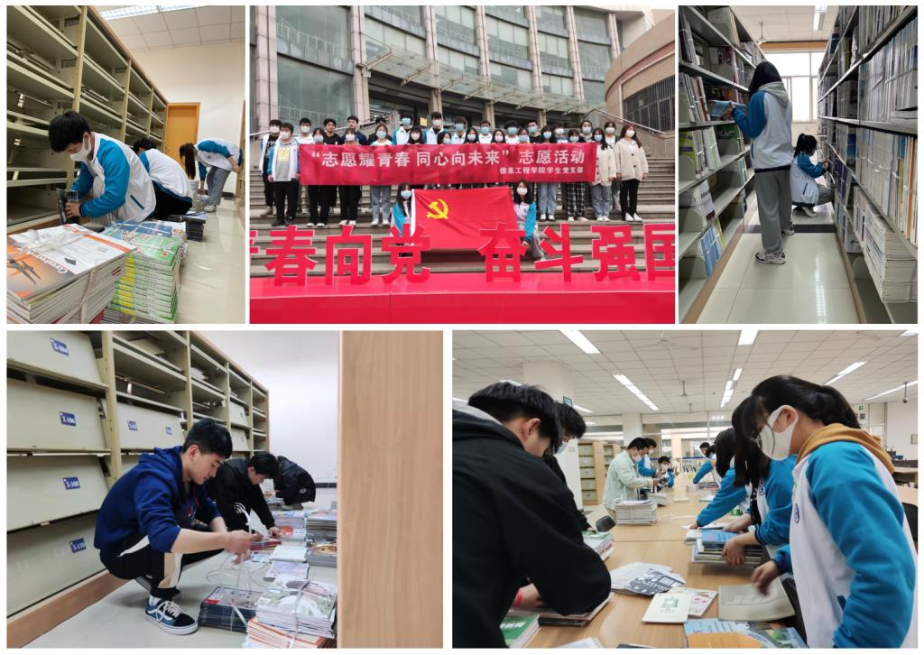 为落实落细入党“五好”考察机制,巩固“党建+”志愿服务活动,让“党旗红”引领“工院蓝”,培养青年学生德智体美劳全面发展,信息工程学院学生党支部于3月30日下午组织30余名党员、入党积极分子前往图书馆,开展以“志愿耀青春 同心向未来”为主题的志愿活动。